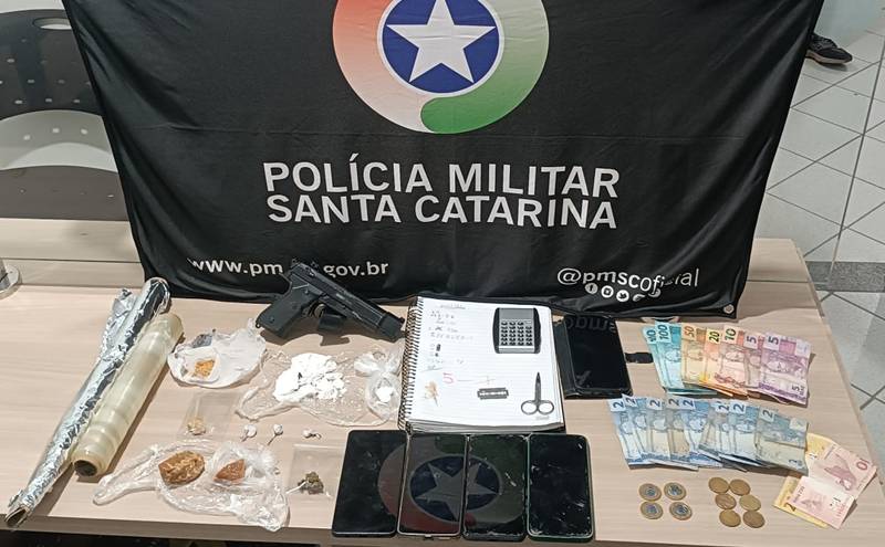 Em seguida, os policiais se dirigiram a uma das residências dos envolvidos, onde localizaram diversos materiais utilizados para o tráfico de drogas e um simulacro de arma de fogo.