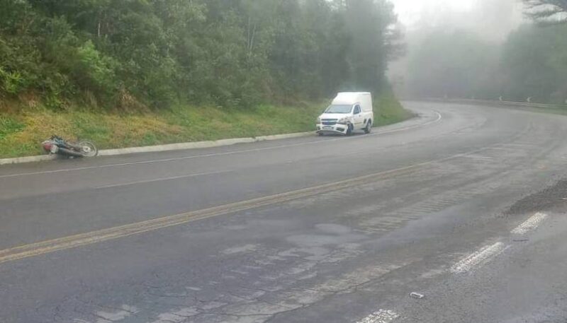 Uma jovem de 18 anos ficou ferida em um acidente de trânsito envolvendo uma motocicleta Honda CG Fan e um Chevrolet Montana, na tarde deste domingo (07), por volta das 12h19, no km 96 da BR-280, localidade de Rio Mandioca, em São Bento do Sul.