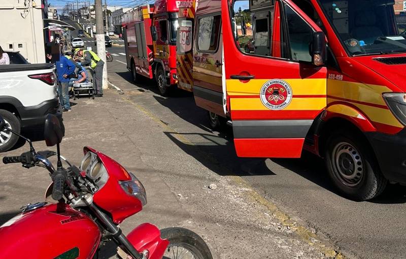 Um motociclista de 37 anos ficou ferido na tarde desta quarta-feira (17) após colidir contra um cachorro e sofrer queda de motocicleta na Rua Tenente Ary Rauen, em frente à loja Planeta Couro, no centro de Papanduva.