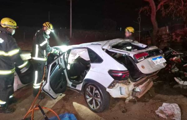 A corporação informou que, com a força da batida, todos os passageiros do banco traseiro foram lançados para fora do veículo.