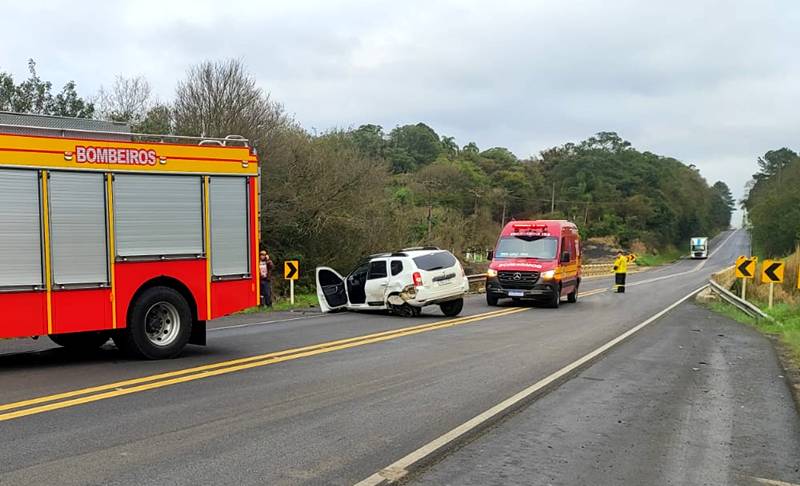 Na manhã desta segunda-feira (1º), um acidente de trânsito envolvendo um caminhão bi-trem e um veículo de passeio mobilizou o Corpo de Bombeiros Militar de Canoinhas no km 230 da BR-280. O acidente ocorreu por volta das 7h20 e resultou no tombamento da carreta, que transportava eucalipto.