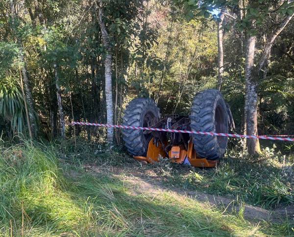 De acordo com o Corpo de Bombeiros, a vítima ficou presa sob o maquinário após o tombamento e já não apresentava sinais vitais quando as equipes chegaram ao local.