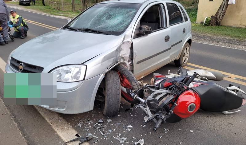 Um acidente de trânsito envolvendo um carro e uma motocicleta deixou um jovem de 21 anos gravemente ferido na tarde desta segunda-feira (1º), na BR-280, na localidade do Pintadinho, em Porto União. O caso foi registrado por volta das 17h35.
