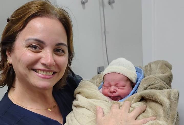 “A paciente chegou sentindo uma dor abdominal, e rapidamente percebemos que se tratava de um parto inesperado. A equipe agiu com extrema rapidez e profissionalismo, garantindo a segurança e o bem-estar da mãe e do bebê”, explica a técnica de enfermagem Kariny de Souza Momm, que é também enfermeira obstetra na Maternidade Carmela Dutra.