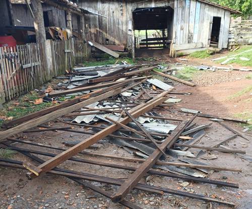 Um temporal registrado neste domingo (21), deixou rastro de destruição em comunidades do interior de Canoinhas, especialmente na localidade de Rio d’Areia de Baixo. A Defesa Civil Municipal atendeu pelo menos oito ocorrências relacionadas a destelhamentos e quedas de árvores.