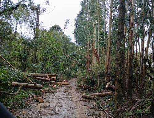 Também houve queda de 15 árvores em vias municipais e outras sete na BR-280, além de uma árvore que atingiu uma residência. Duas estradas seguem interditadas.
