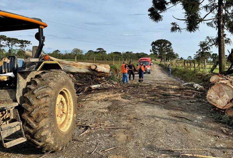 No local se constatou um pinheiro araucária de médio porte, com aproximadamente 20 metros de altura, obstruindo a via de rolamento. O incidente também foi causado por fortes ventos que atingiram a região. Não houve feridos. Com a utilização de motosserra, foi realizado o corte e desobstrução da via.