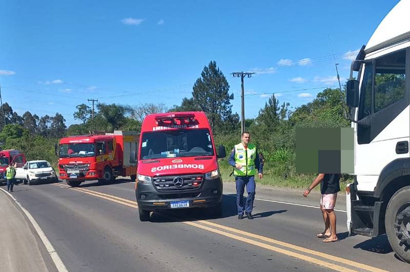 Uma colisão entre um automóvel Fiat Toro e um caminhão Volkswagen 8.140 mobilizou o Corpo de Bombeiros Militar na tarde desta quarta-feira (22), na BR-280, em Canoinhas. O acidente, registrado às 14h20 na localidade de Alto da Pedra Branca, resultou em três pessoas feridas, todas ocupantes do carro.