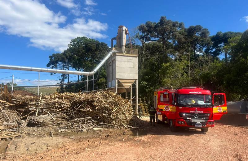 O chamado foi registrado às 14h20. As guarnições se deslocaram ao local onde foi constatada fumaça saindo da parte superior do depósito de serragem, além de focos de fogo na serragem acumulada no chão.