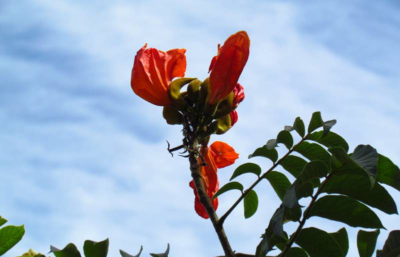 Originária das regiões tropicais da África Ocidental, a espatódea — também conhecida como bisnagueira ou tulipeira-do-gabão — é uma árvore de grande porte, atingindo até 25 metros de altura, e foi amplamente utilizada na arborização urbana em diversas cidades brasileiras.