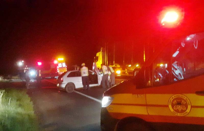 As guarnições foram acionadas com a informação inicial de uma colisão grave entre dois carros, com uma vítima inconsciente.