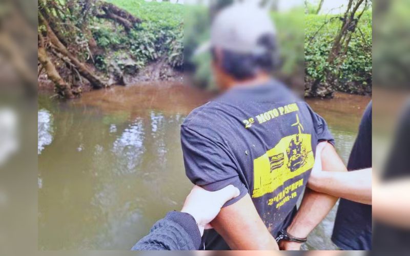 O homem fugiu do local, mas foi encontrado e preso horas depois. Ele foi localizado fugindo por uma fazenda. Segundo a delegada, as buscas contaram com a ajuda de um drone, que filmou o homem correndo por uma plantação, e do fazendeiro, que guiou os policiais pelas estradas.