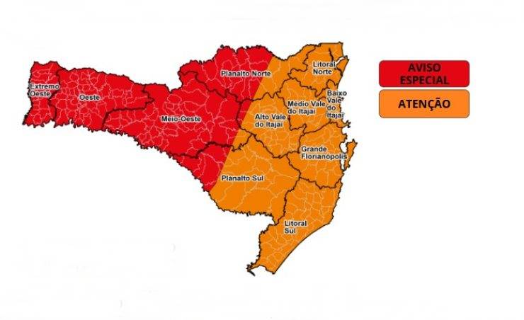 A formação de uma frente fria e de um ciclone extratropical em alto mar contribui para a formação de tempestades com vendavais, chuva intensa e ressaca marítima em Santa Catarina. A Defesa Civil emitiu um alerta vermelho para eventos adversos entre essa sexta-feira (7) e sábado (8).