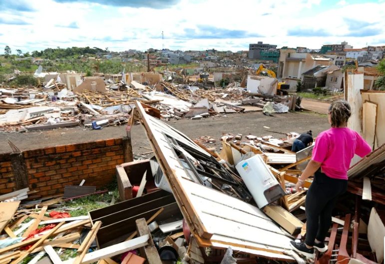 Ventos de mais de 250 quilômetros por hora atingiram a cidade de 14 mil habitantes, que fica no Centro-Sul paranaense, 400 km ao leste da capital, Curitiba.