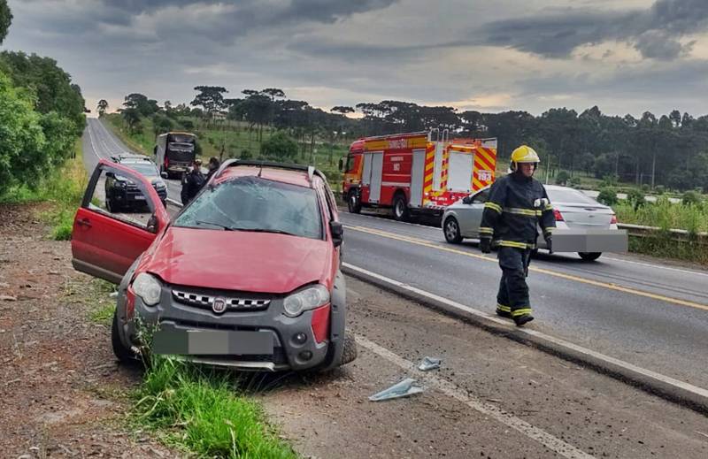 Um acidente de trânsito resultou no capotamento de um veículo Fiat Strada de cor vermelha na BR-280, na localidade de Campininha em Três Barras, na tarde de sábado (22), por volta das 17h30.