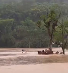 A água encobriu pastagens e acessos, deixando diversos bichos presos em áreas completamente alagadas. Os resgatadores enfrentaram correntezas, lama e chuva para retirar os animais e levá-los a pontos mais altos, evitando de serem arrastados ou morrer afogados.