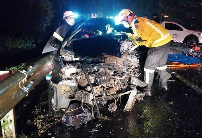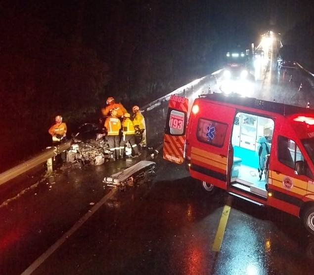 As vítimas, um passageiro de 28 anos e o condutor de 31 anos, foram resgatadas pelo Corpo de Bombeiros Militar com apoio da concessionária e encaminhadas ao Hospital São Sebastião.