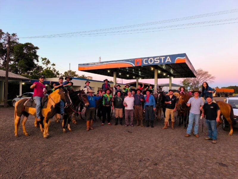 Ao chegarem na cidade, foram recebidos no Posto Costa pelo patrão do CTG Sinuelo da Serra, Célio Bleich, e outros integrantes da entidade tradicionalista.