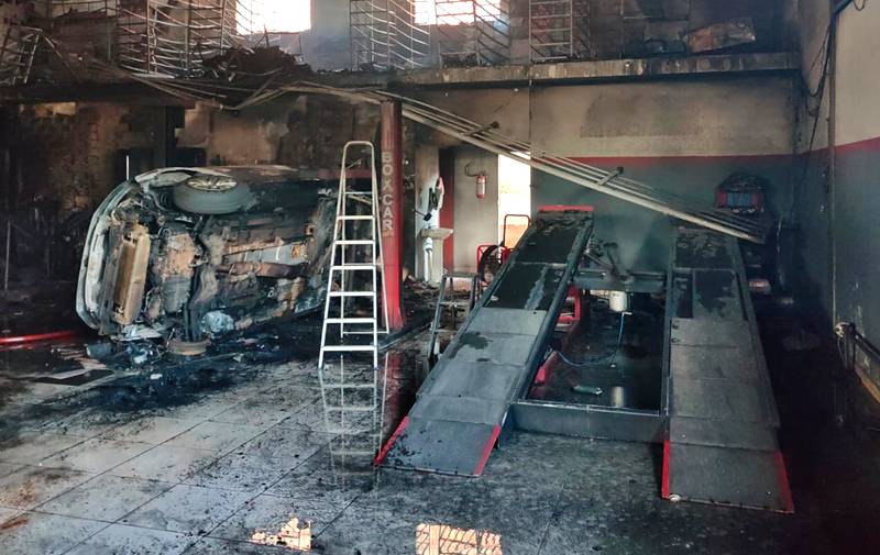 No interior da oficina mecânica havia 9 veículos; alguns deles sofreram danos significativos devido ao fogo e à fumaça. Outros 4 carros que estavam estacionados na lateral externa do imóvel foram preservados e não sofreram danos.