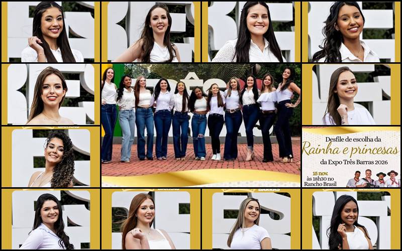 A contagem regressiva para a Expo Três Barras 2026 começa oficialmente neste sábado (15) com o tradicional Desfile de escolha da Rainha e Princesas. O evento, que promete celebrar a beleza e a representatividade do município, será realizado no Rancho Brasil, a partir das 18h30.