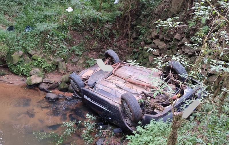 Ao chegar ao local, os socorristas confirmaram a gravidade da situação: o carro havia saído da pista e caído em uma grota que continha um córrego de água, dificultando o acesso e a extração das vítimas.