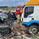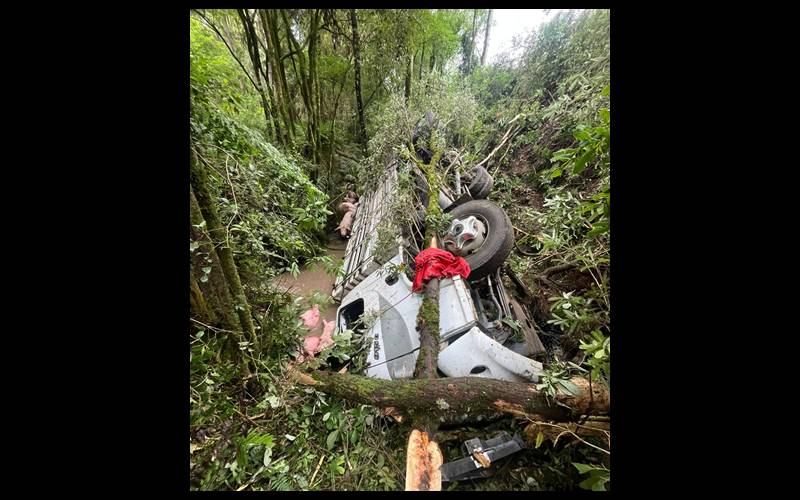 O veículo envolvido foi um caminhão Mercedes-Benz modelo 915C, carregado com suínos. O condutor, um homem de 49 anos, foi encontrado deitado às margens da estrada, fora do veículo.