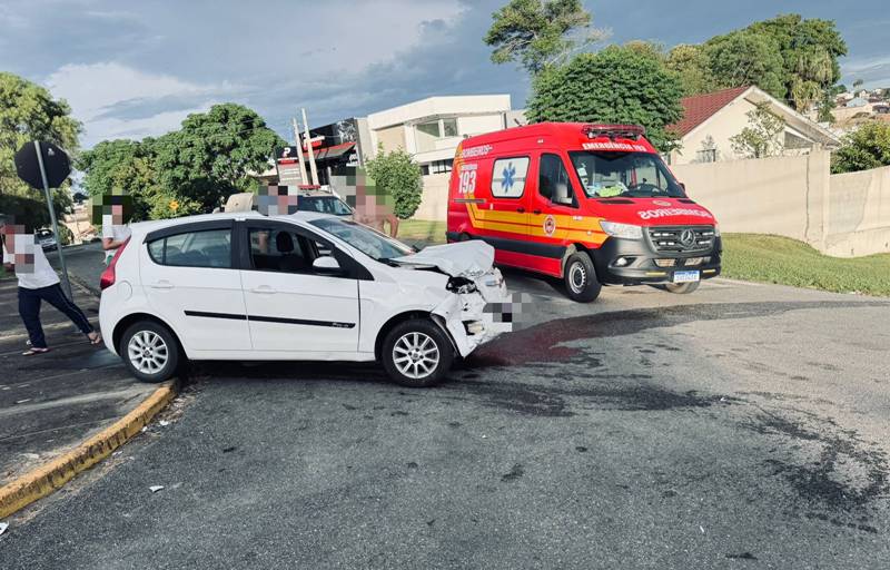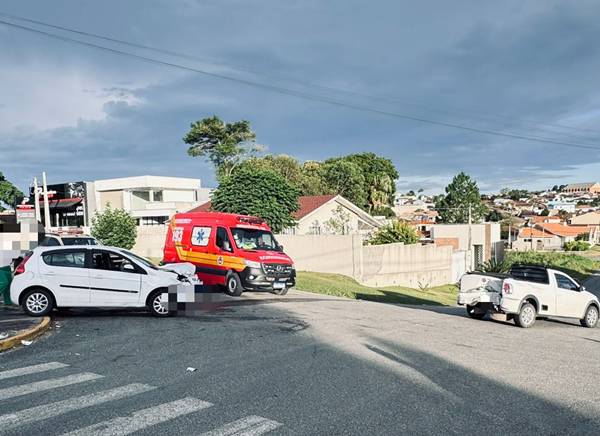 Uma colisão entre dois automóveis mobilizou as equipes de socorro do Corpo de Bombeiros Militar e do SAMU no final da tarde deste sábado (27). O acidente, envolvendo um Fiat Pálio e uma VW Saveiro foi registrado por volta das 17h54, na Rua Frei Menandro Kamps, no Centro.