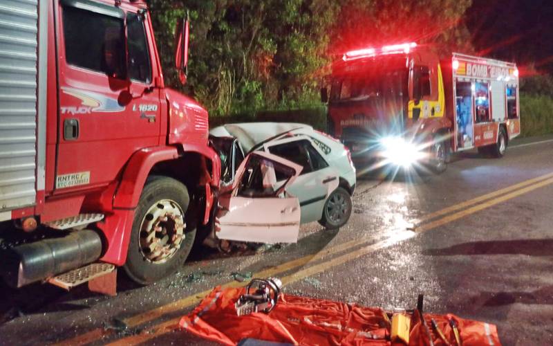 Um grave acidente de trânsito do tipo colisão entre um carro e um caminhão foi registrado na noite de terça-feira (9), por volta da meia-noite, na Rodovia BR-280, no bairro Vista Alegre, em Rio Negrinho.