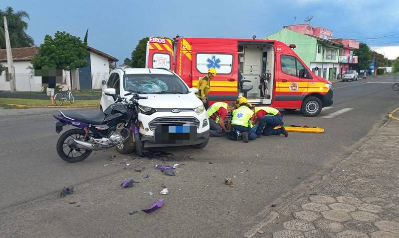Um acidente de trânsito envolvendo um automóvel Ford Ecosport e uma motocicleta Honda Fan 160cc mobilizou as guarnições do Corpo de Bombeiros na tarde desta segunda-feira (29), por volta das 13h50. A colisão ocorreu na Rua Nazir Cordeiro, no bairro Campo da Água Verde, em Canoinhas.