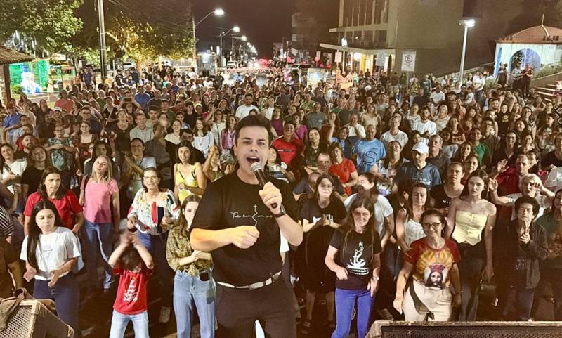 A programação teve início com o Ministério Kairós, que preparou o ambiente com canções de oração e entrega, conduzindo o público a um momento de profunda conexão com Deus. Aos poucos, a rua Frei Menandro Kamps foi sendo tomada por famílias que permaneceram unidas.