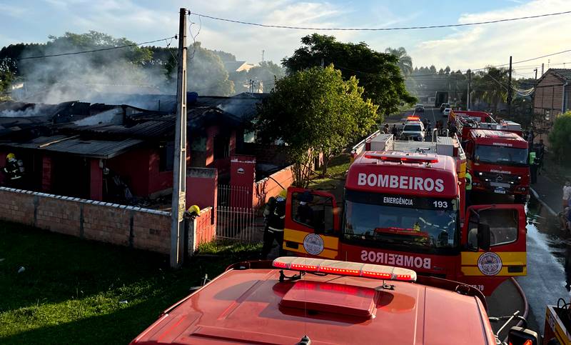 Ao chegarem ao local, os policiais constataram a gravidade da ocorrência. O imóvel onde o fogo se iniciou foi totalmente destruído pelas chamas. Seis viaturas do Corpo de Bombeiros Militar, de Três Barras e Canoinhas, trabalharam intensamente no combate. Foram usados cerca de 8 mil litros de água para controlar e extinguir o incêndio.