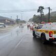 O Corpo de Bombeiros Militar (CBMSC) foi acionado para o resgate da família levada pela enxurrada.
