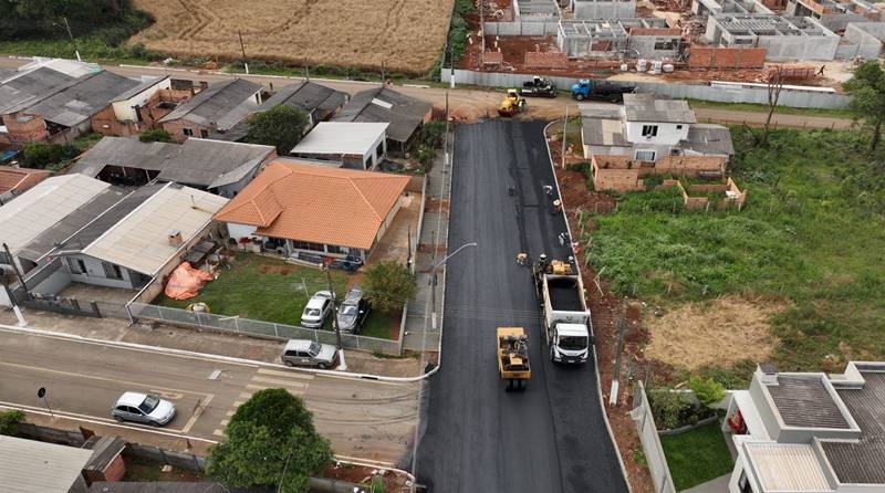 As obras de pavimentação asfáltica no distrito de São Cristóvão, em Três Barras, seguem em ritmo acelerado. A Rua Olga Zeh Pereira, uma das vias de maior tráfego urbano na localidade, está sendo contemplada com a aplicação da massa asfáltica.