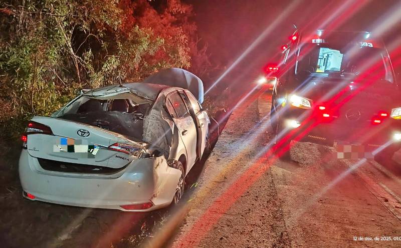 O acidente envolveu um veículo Toyota Yaris. Ao chegarem, os socorristas encontraram a condutora já fora do veículo, sentada no acostamento da rodovia.