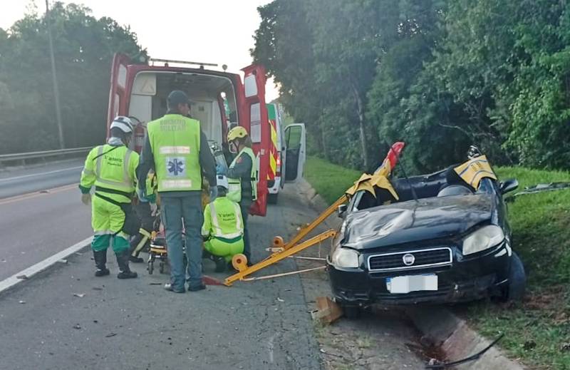 O acidente ocorreu por volta das 18h12. Ao chegarem ao local, os socorristas encontraram o veículo posicionado entre o acostamento e o barranco da rodovia.