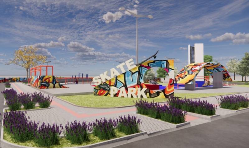 A praça ganhará uma arena ainda mais completa para o skate, com rampa curva, corrimão para manobras, um bowl e o monumento Skate Park, que servirá como identificação visual do novo complexo esportivo.