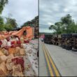 Um veículo GM Classic colidiu violentamente contra um poste de iluminação pública por volta das 10h, deixando cinco ocupantes feridos, entre eles um bebê em estado delicado.
