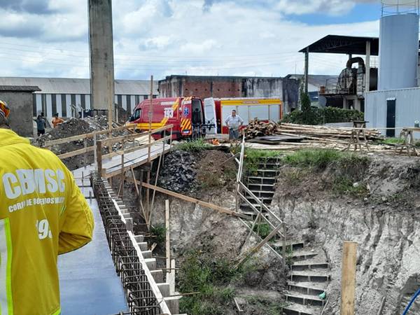 Ao chegarem no local, os socorristas encontraram a vítima consciente dentro da área de fundação da obra.