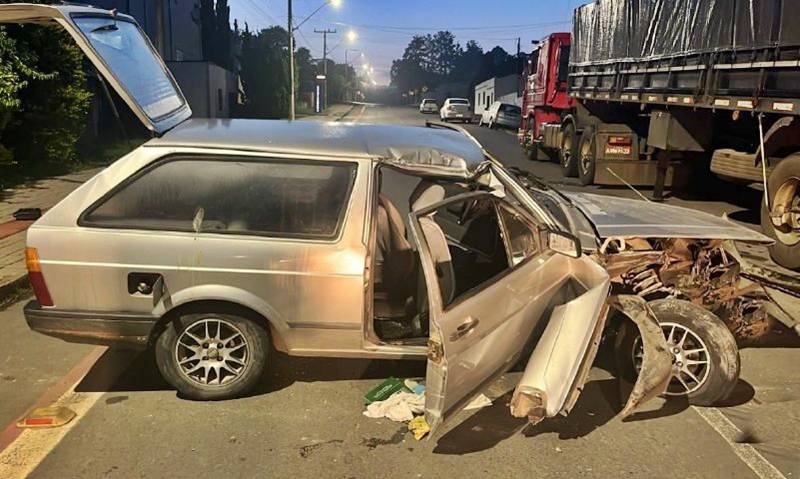 Um grave acidente de trânsito mobilizou a Polícia Militar e o Corpo de Bombeiros na madrugada deste sábado (31), por volta das 05h10, no bairro Jardim América em Mafra. Um VW/Parati colidiu violentamente contra a traseira de uma carreta Randon que estava devidamente estacionada na via.