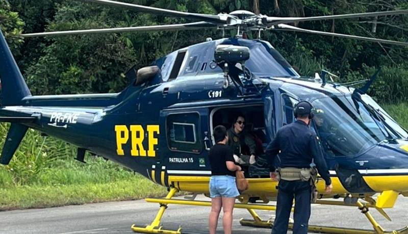Imediatamente, os policiais iniciaram uma escolta terrestre até o pátio do pedágio de Garuva, enquanto a central acionava o serviço aeromédico.
