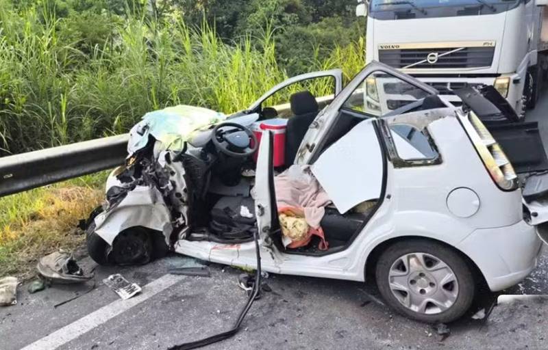 De acordo com a Polícia Rodoviária Federal (PRF), o Ford Fiesta em que a família estava se envolveu em uma colisão frontal que mobilizou cinco veículos.