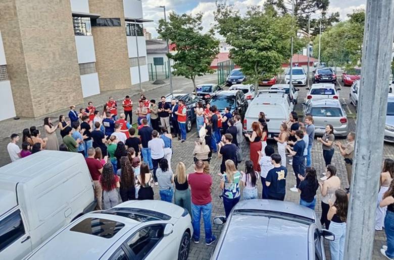 O alarme foi acionado e a desocupação total do prédio ocorreu em menos de quatro minutos, demonstrando a eficiência das rotas de fuga. Paralelamente, a guarnição do Corpo de Bombeiros Militar, acionada via 193, chegou à edificação em menos de dois minutos, comprovando a agilidade no tempo de resposta operacional.