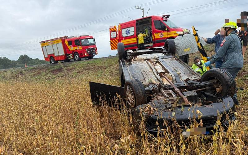 Duas pessoas ficaram feridas após um Fiat Palio preto sair da pista e capotar no acesso principal ao município de Irineópolis, na tarde de quarta-feira (11). O Corpo de Bombeiros foi acionado por volta das 18h10 para atender a ocorrência. O veículo foi encontrado capotado fora da pista de rolamento.