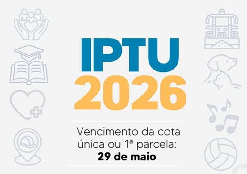 Para isso, o cidadão precisa clicar no banner IPTU 2026 – Online, que fica no topo da página, preencher os dados e fazer a impressão.