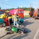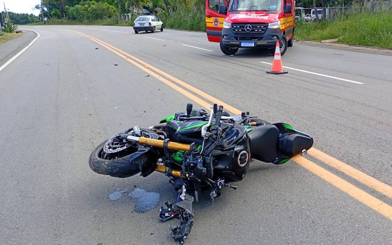 CAMPO ALEGRE – O Corpo de Bombeiros de São Bento do Sul foi acionado às 15h47 deste domingo (01) para atender um acidente de trânsito na localidade de Fragosos, em Campo Alegre. A colisão frontal ocorreu na altura do número 2515 da Rodovia dos Móveis, envolvendo uma motocicleta e um veículo que tracionava uma carretinha.