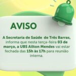 A Prefeitura de Três Barras, por meio da Secretaria de Assistência Social, confirmou para esta sexta-feira, 06 de março, a entrega das cestas básicas do Programa de Combate à Fome. A distribuição contempla famílias da sede do município, do distrito de São Cristóvão e das áreas rurais.