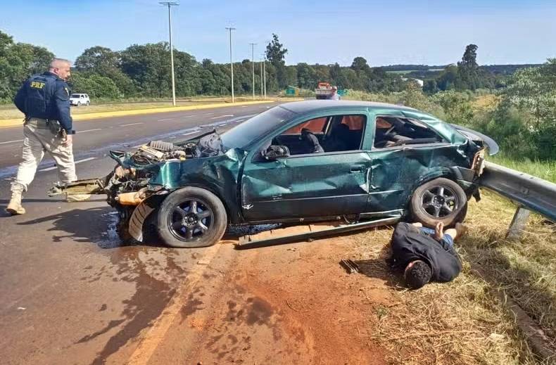 A fuga só terminou quando o condutor perdeu o controle do veículo, colidindo lateralmente contra um caminhão e, na sequência, contra a defensa metálica da rodovia. Apesar da violência do impacto, a criança não sofreu ferimentos, pois estava devidamente presa à cadeirinha.