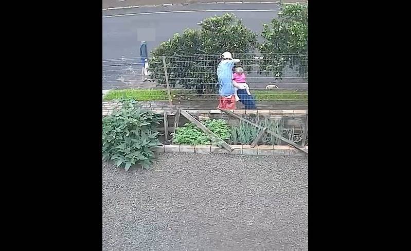 Imagens de câmeras de segurança registraram toda a dinâmica do crime. O vídeo mostra o momento em que o agressor estaciona um Volkswagen Gol branco, desce do veículo e aborda a jovem por trás, desferindo os golpes de faca. Durante o ataque, a criança caiu no chão, mas não sofreu ferimentos.