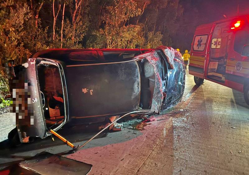 Ao chegarem ao local, as guarnições encontraram o Peugeot lateralizado sobre a pista, indicando que o veículo havia capotado após o impacto. O condutor, um homem de 74 anos, já estava fora do automóvel e caminhava pela cena.