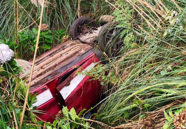 A guarnição foi acionada presencialmente e, ao chegar ao local, encontrou o veículo fora da pista, em posição invertida (com as rodas para cima). A condutora, uma jovem de 25 anos, estava no interior do automóvel, consciente, sendo mantida no assento pelo uso do cinto de segurança.